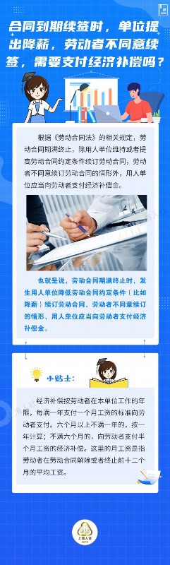 网友“宝井小V”在留言区留言,如果合同到期续签的时候,公司提出降薪,个人不同意,双方没续签成功,公司需要支付经济补偿吗?关于这个问题,请看解答: