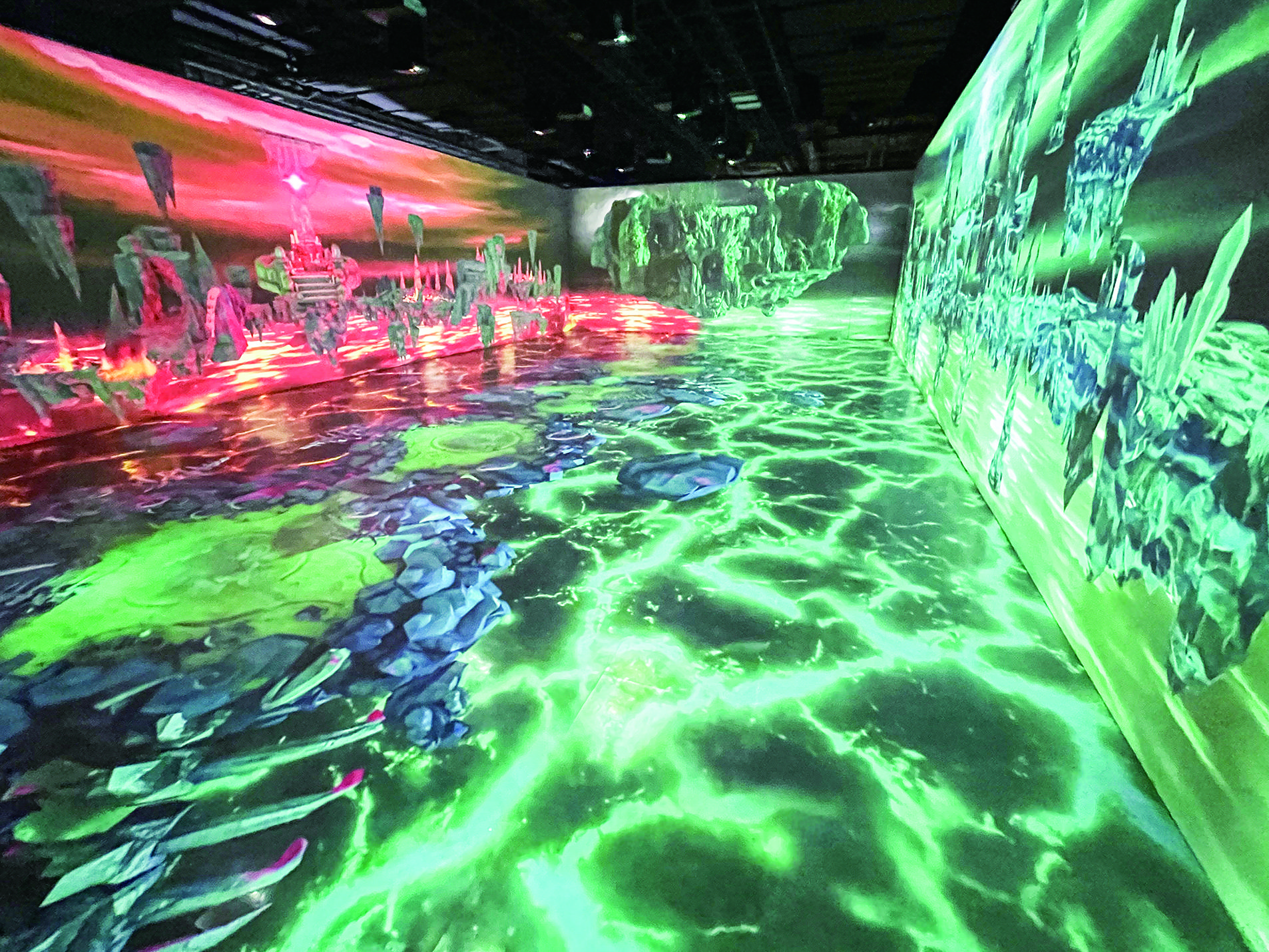 以数字光影技术,生动展现《山海经》中的神话故事。日前,松江企业上海领路人科技股份有限公司与奇创旅游集团共同打造的“探秘山海经·大型沉浸艺术展”在虹桥天地试运营,吸引众多游客。