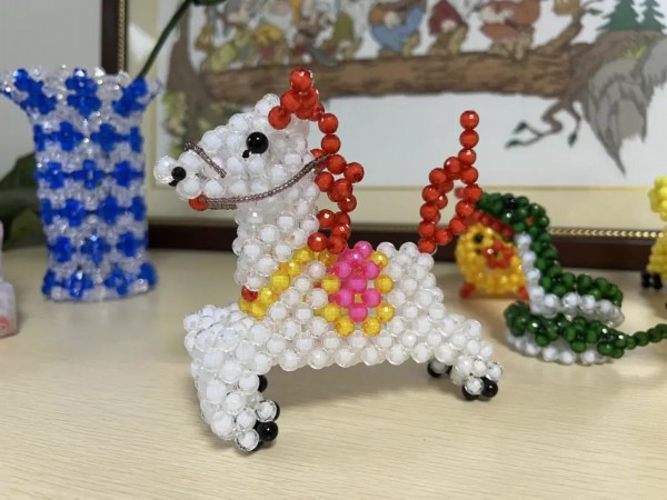 居民林阿姨告诉记者,串这个马的时候,一定要注意颜色的搭配,如果弄错了,可能马鞍就做不出来,尾巴也不像了。