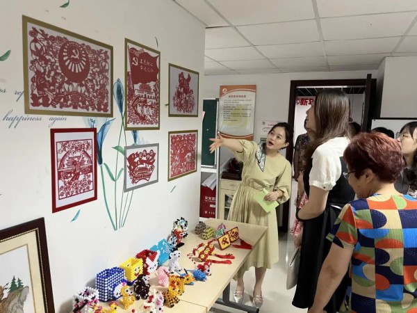 在剪纸作品展示区,热爱剪纸的社区居民,仍在努力创作,她们希望把最美的剪纸作品献给大家。一张张红纸,寥寥数剪,就可以剪成栩栩如生的图案。