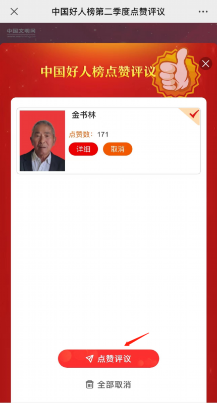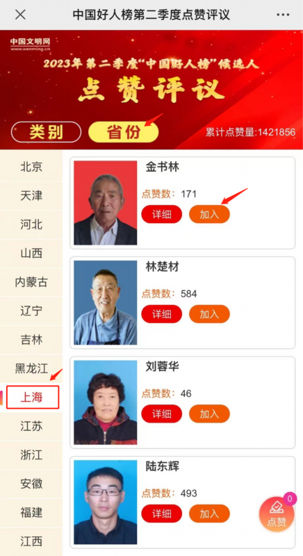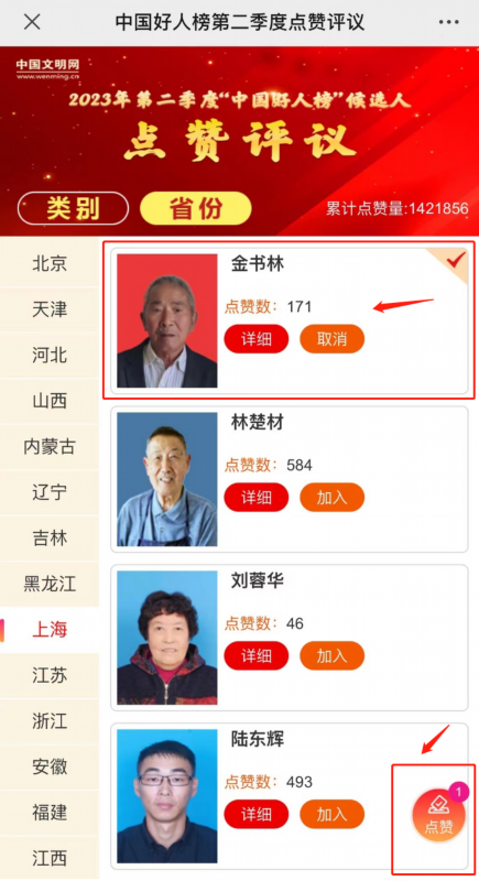 点赞规则:每位网友对每位候选人当月只能点赞一次。