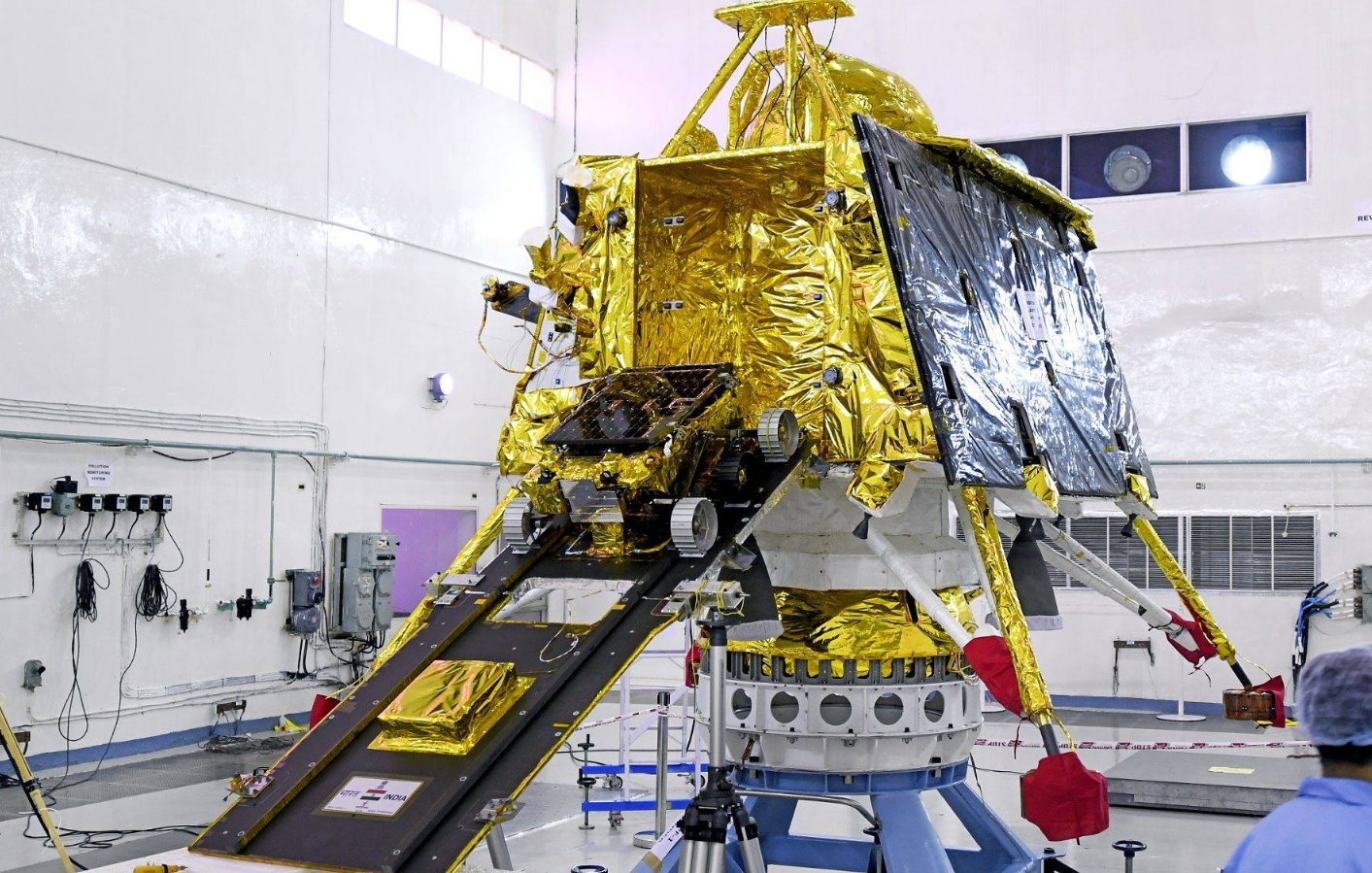 月船二号探测器设计上比一号复杂得多,月船一号只是一个一吨级通信卫星平台,而月船二号发射质量达到了3850千克,包括轨道器、着陆器和月球车三个部分,其中着陆器被命名为Vikram,以纪念印度航天之父Vikram,而月球车被命名为Pragyan,整个项目花费了96亿卢比(当时币值约合1.3亿美元)。印度于2019年7月22日使用LVM3火箭发射了月船二号探测器,这也是LVM3的首次正式发射任务,当年8月20日探测器进入月球轨道,9月7日开始实施月球软着陆。月船二号的变轨和软着陆机动开始相当顺利,但高度降低到2.1公里高度时飞行轨迹开始偏移,遥测信号显示Vikram着陆器最后的垂直下落速度超过58米/秒,这肯定是硬着陆了。