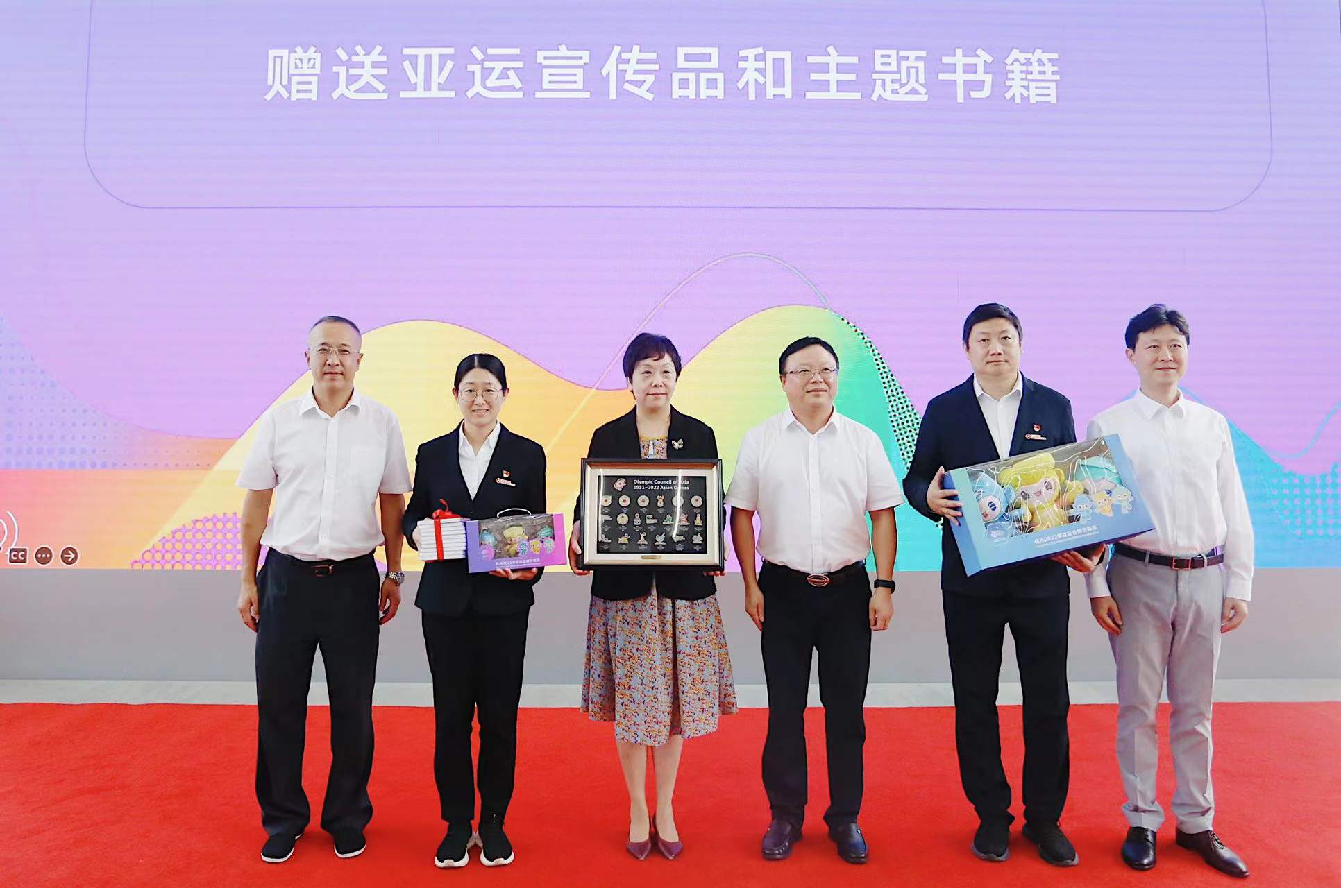 杭州驻沪办、杭州亚组委宣传部、上海市合作交流办向徐汇滨江党群服务中心赠送了亚运吉祥物和亚运主题书籍