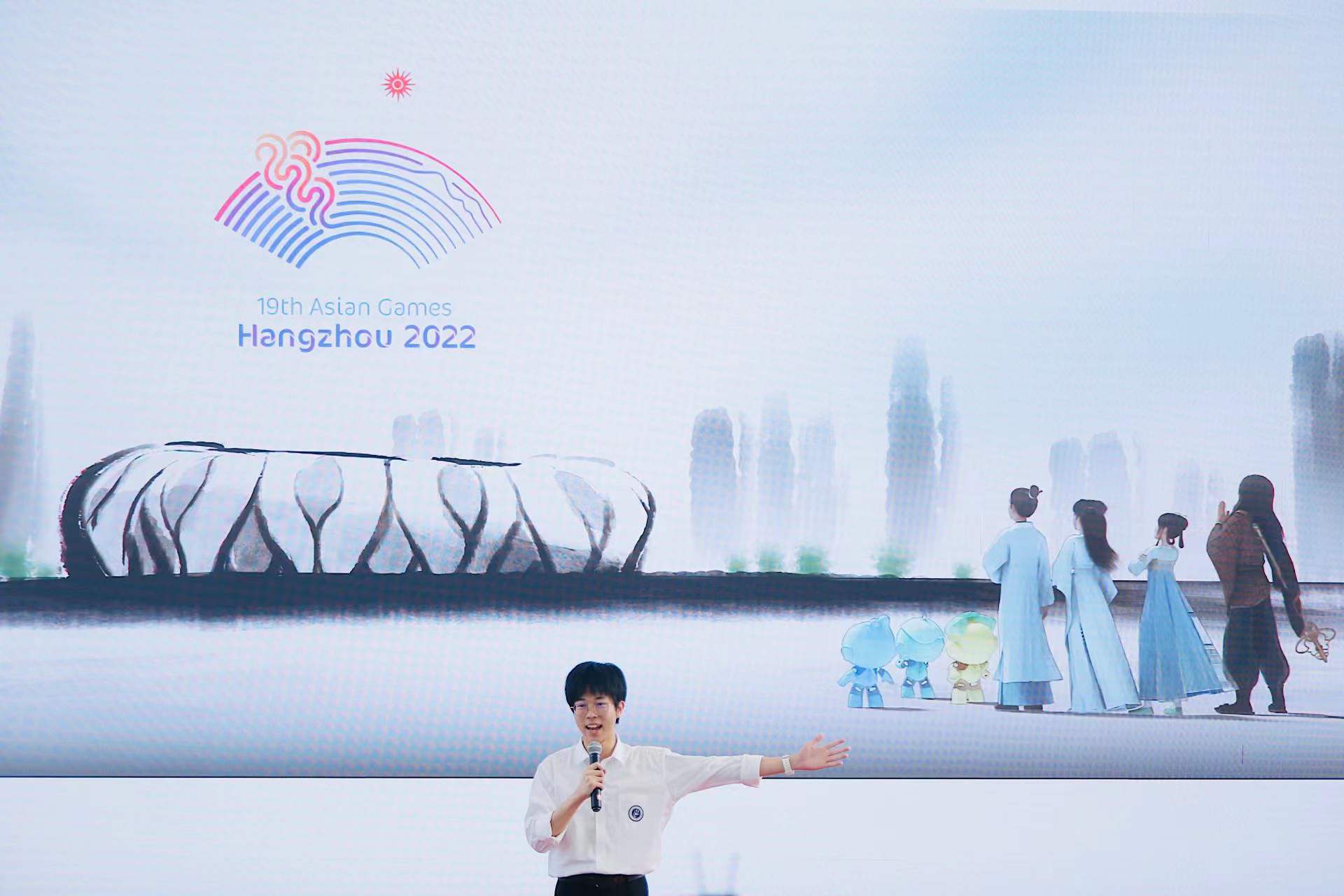 上海市西南位育中学的王怡瑄同学用《杭之水韵》的开场演讲,向大家传递她对亚运会的期盼。