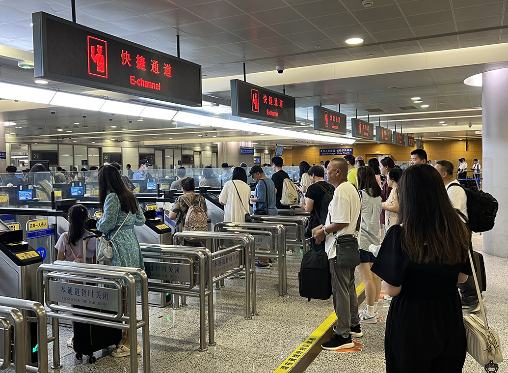 旅客通过边检快捷通道办理边检通关手续。 黄波 图
