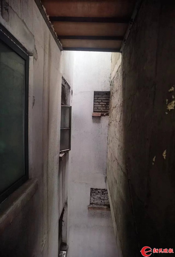 比较离奇的是,有一个天井,被西面居民私搭的“吊楼”“蚕食”一半后,东面居民在多次“抗议”无果的情况下,其正上方居民又建起了“吊楼”,并与西侧“吊楼”上方叠加出来的“吊楼”“无缝对接”,以至于天井东面居民窗户外,即使烈日高照的中午,也如同傍晚一样逼仄乏光。
