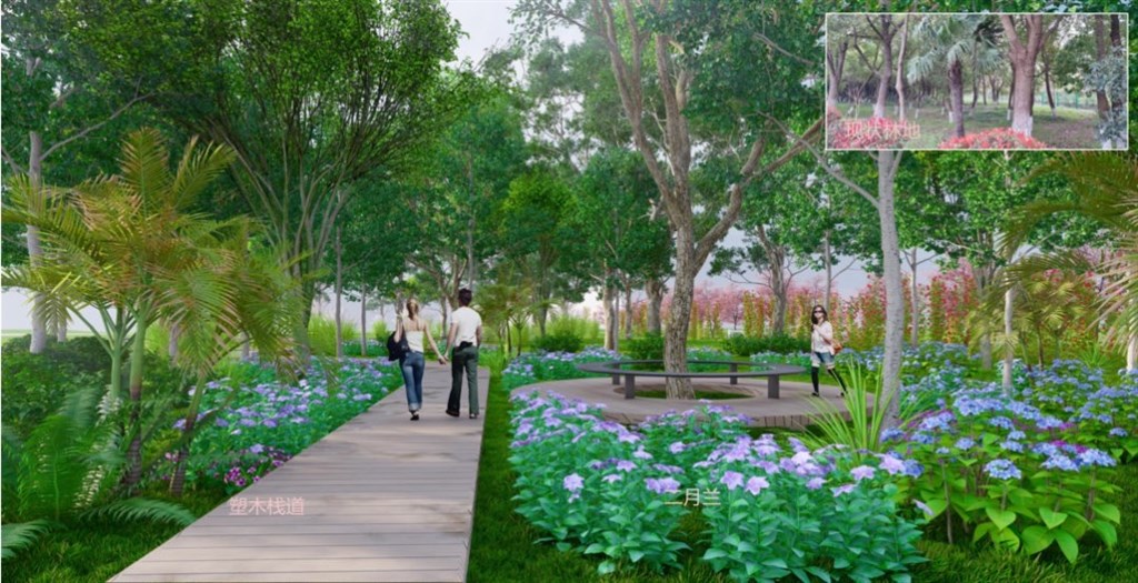 项目位于星明村荣安路以北、翔方路以南,处于环同济创智城区域,临近壹号湾科技园、上海国际赛车场与市民体育公园。总用地面积122.66亩,约81773平方米,分两期建设,一期已开建,主要集中打造内部景观及步道。 根据计划,项目将围绕“花林+”主题,苗木与草、花相融合,打造集休闲观光、亲子游学、健康体验于一体的近郊活力休闲林园。园内将设置广场、健康步道、景观花架、休闲廊架、景观桥等,为周边居民和企业员工提供休憩、观赏、健身和康养的绿色生态空间。