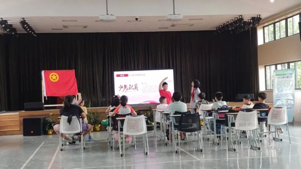 为了让小学生能够进一步认识红领巾、了解少先队,在小史“老师”的队课上,分别从“少先队的基础知识”“少先队的基本礼仪”“少先队的标志队歌”“争做新时代好队员”几方面向小学生介绍了中国少年先锋队,让小学生感受少先队员的光荣感和责任感,激发了小学生对少先队组织的热爱。