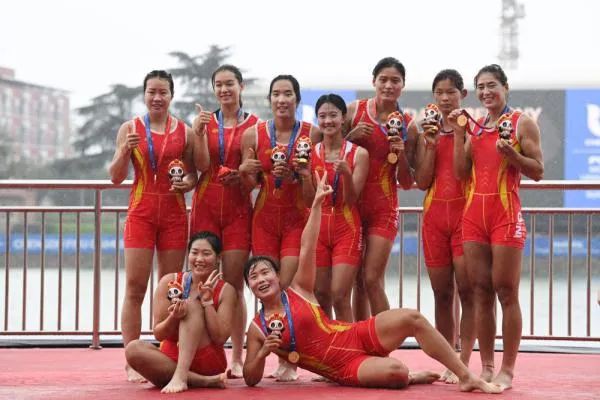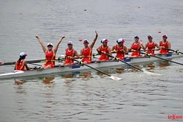 紧接着下午女子八人单桨有舵手项目开赛。中国组合鞠汶君、夏珂珂、赵旋伊、闻嘉奕、张书贤、赵星月、王子凤、吴伊慧和宋佳怿(舵手)9位姑娘团结一心,在雨中劈波斩浪,以6分25秒03的成绩为中国赛艇队再添一金。荷兰队落后3秒97位列第二,意大利队获得铜牌。