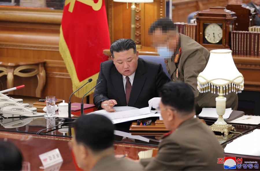 朝中社报道称,朝鲜劳动党第八届中央军事委员会第七次扩大会议分析那些破坏朝鲜半岛地区和平与稳定的形势恶化主犯的军事蠢动,通过将之彻底牵制的进攻性军事应对方案,并把做好一切战争准备,有事时以压倒性战略遏制力一举粉碎敌人的攻击,采取同时多发性军事攻势的问题列入议程进行讨论。
