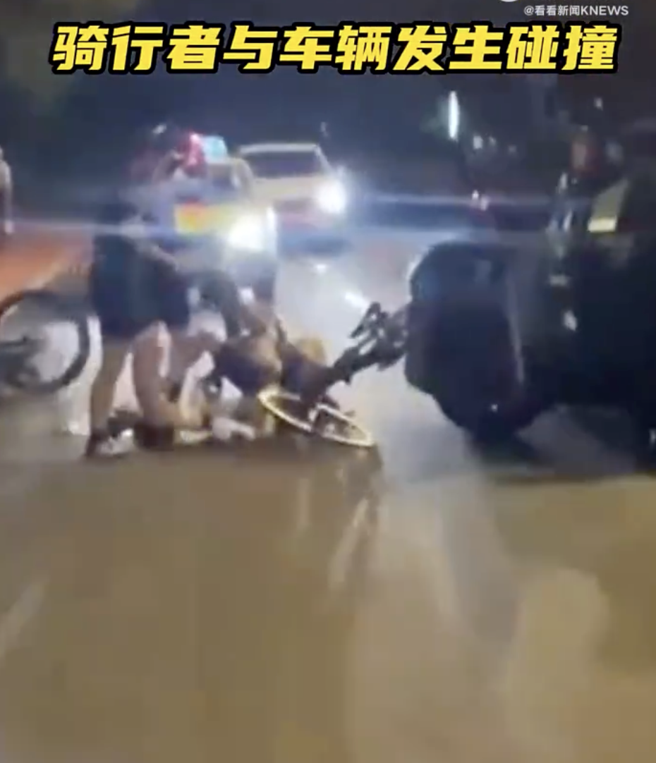 而当车队一路骑行到苗江路时,一辆自行车与路边正在起步的机动车发生碰撞,骑手被撞倒在地。