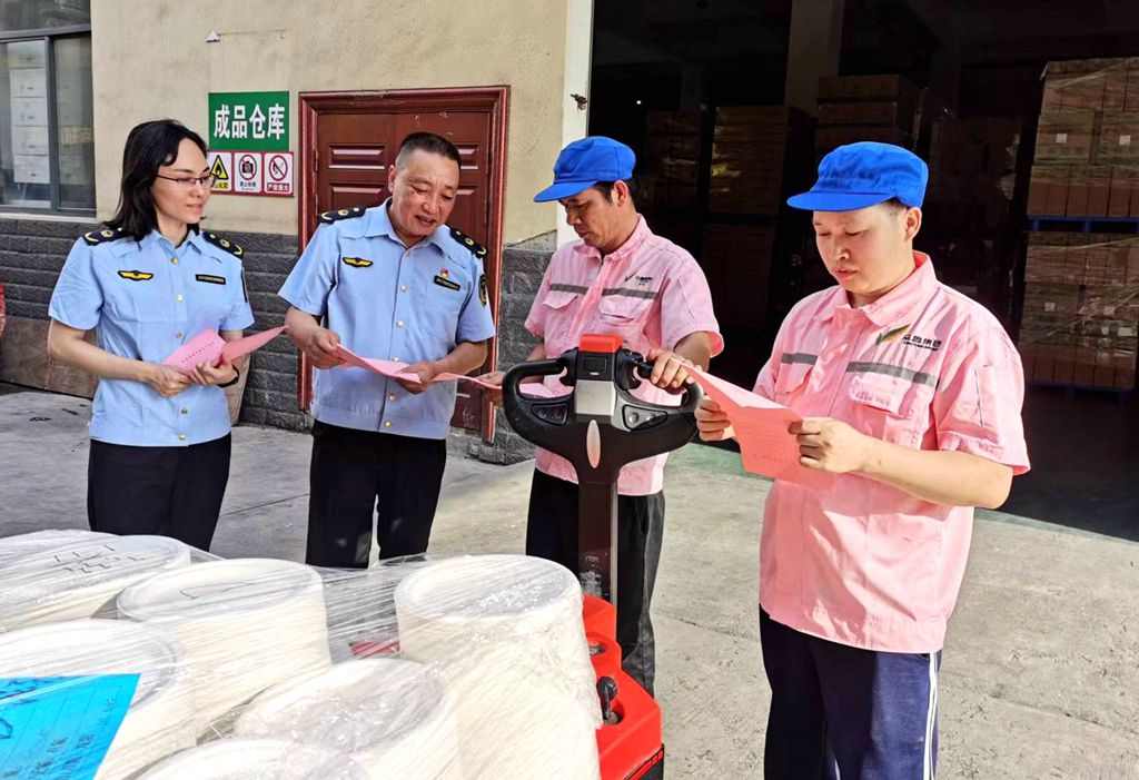 来宾市市场监管局工作人员到企业中开展信用修复宣传工作。