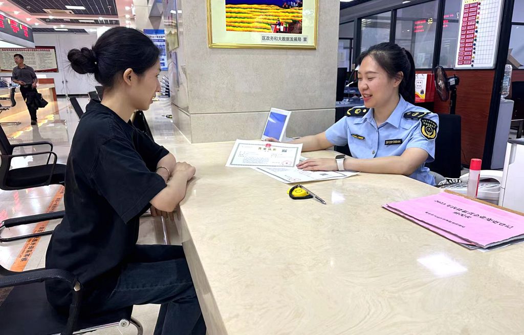 来宾市市场监管局服务窗口工作人员开展信用修复工作。