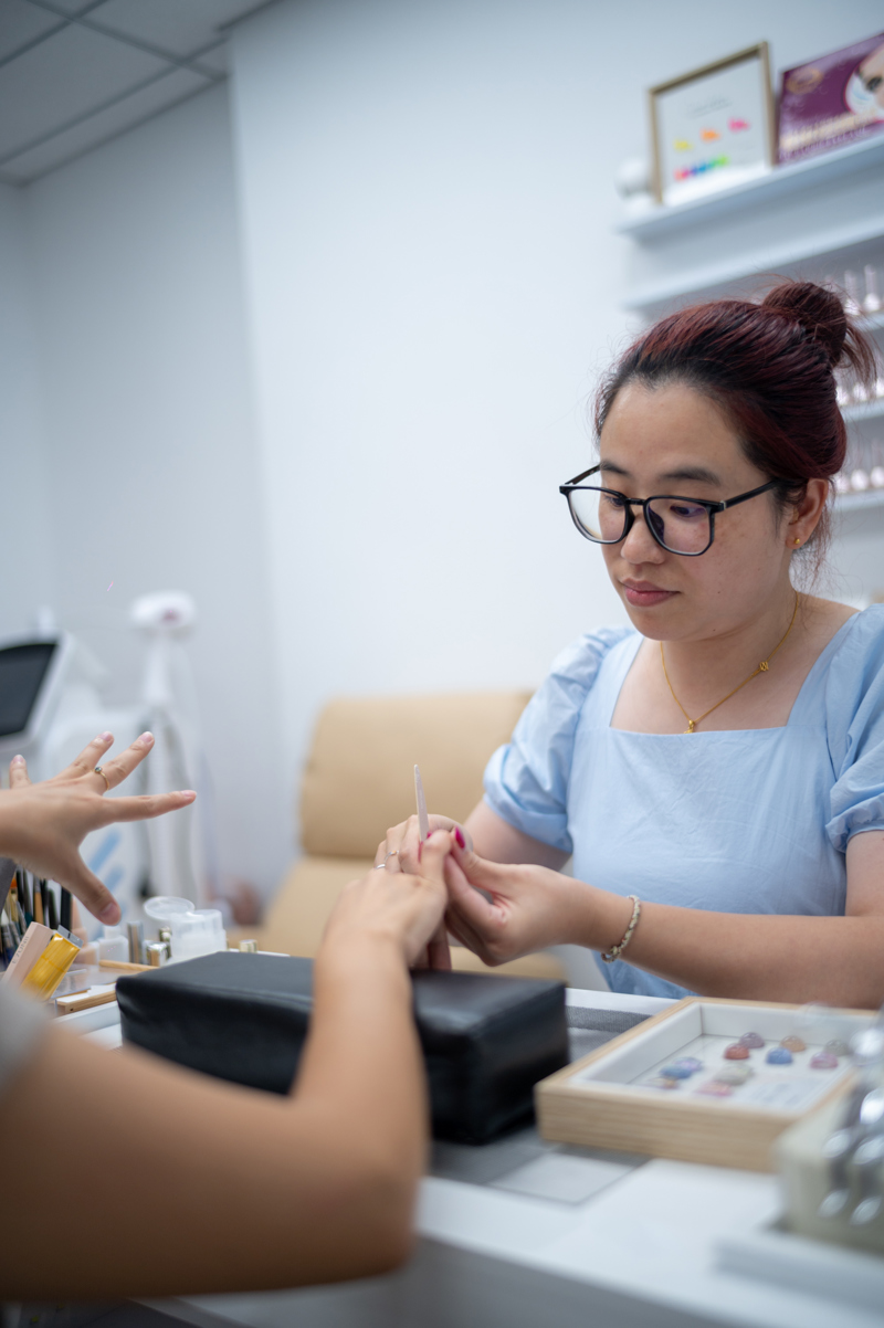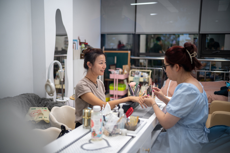 美甲沙龙里,主理人韩夕妤和丈夫忙着接待来宾。今年6月底,作为上海队的参赛选手,她参与了第七届全国残疾人职业技能大赛的美甲专业比拼,获得佳绩。