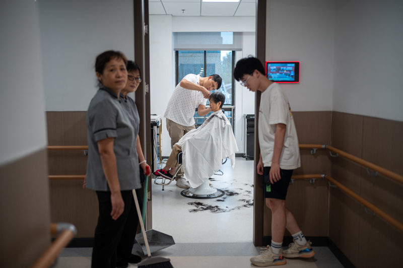 居住在附近的杨阿姨前来体验聋人理发师的手艺。她表示,之前只知道这里有奶茶店,没想到二楼还有这么多便民服务项目,师傅的手艺很好,这里的环境也不错,希望以后一直可以来做头发。