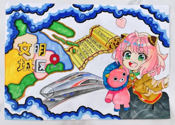 文明入画!一起来欣赏这些奉贤小“马良”的作品