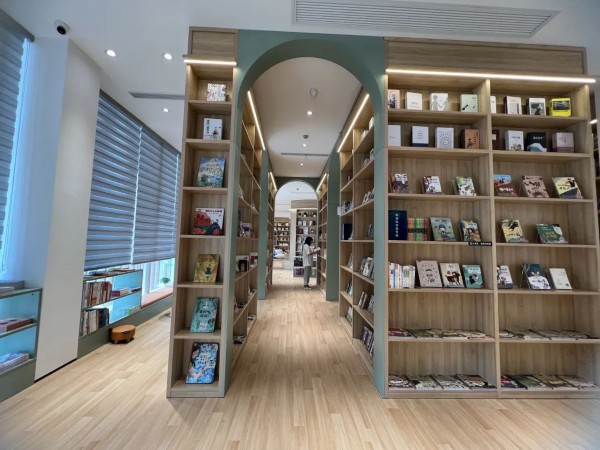 “这家店我们主打家庭式亲子消费,店里有‘一馆一店一中心’。‘一馆’指陈伯吹国际儿童文学馆,这是全国首个以儿童文学为主题的图书馆。‘一店’指家庭式消费书店,大家在店里可以看到小朋友、亲子家庭非常喜欢的各类迪士尼、华纳的IP内容,同时还有非常有童趣的小红帽主题咖啡。我们还融入了大隐艺术中心,有雅马哈钢琴和共享琴房,未来在这个中心会举办各类围绕艺术的体验活动。”店长介绍。