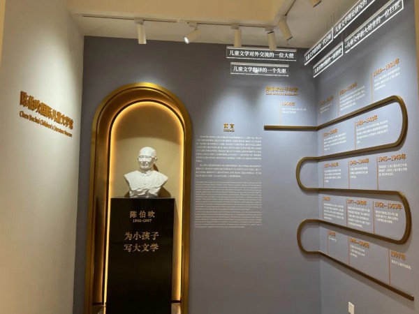 在“一馆一店一中心”中,最引人注目的就是位于二楼的陈伯吹国际儿童文学馆。儿童文学馆分为展示区和借阅区。展示区陈展了陈伯吹先生的生平和陈伯吹国际儿童文学奖的发展历程。借阅区则童趣满满,孩子不仅可以借阅到陈伯吹国际儿童文学奖获奖作品,也可以在馆内丰富多彩的绘本、儿童文学书籍之中寻找属于自己的心爱读物。
