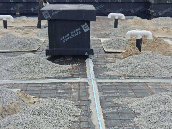 在多方共同协作下,防水工作有序开展,建设方铺贴防水卷材、绑扎钢筋、浇筑水泥,从源头杜绝漏水问题。