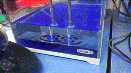 陈岭用透明机油和染色水组成的水槽,这种结构可以明显放慢油水分界线的波速,便于观察。然后用步进电机制作了两个独立的波源,学生通过图形化编程,可以独立控制波源的振幅、频率、相位等。再通过track等视频分析软件得出定量的结果和规律。