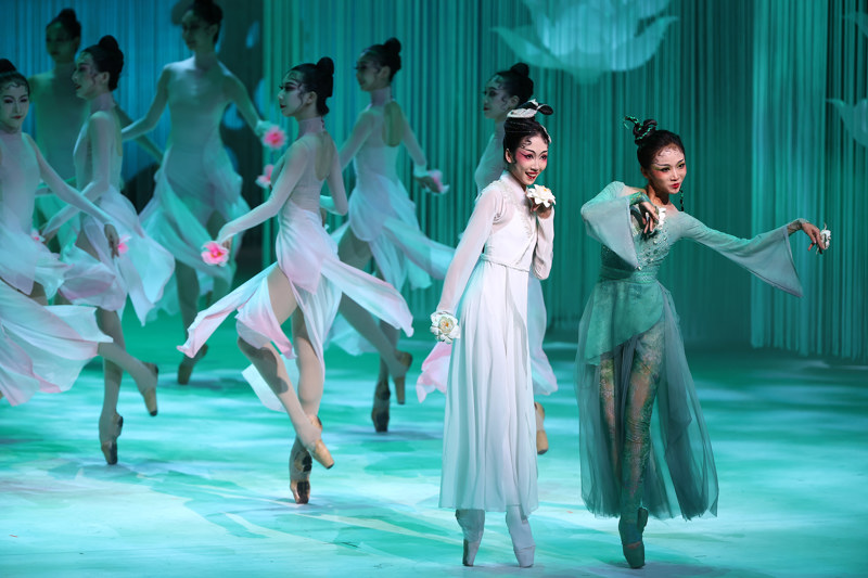 9月9日、10日,广州芭蕾舞剧院《白蛇传》亮相上海国际舞蹈中心。该剧从惊蛰、游湖、琴瑟、妄念、端阳、断魂、抉择、明心等章节出发,采用轻喜剧手法创作,用诙谐幽默传递东方文化。