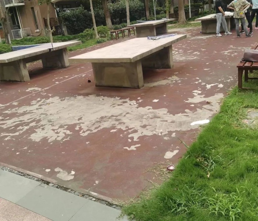 该区域原本是居民健身活动区,但由于年久失修导致地面开裂等情况,原本的涂料也已斑驳不堪,四周杂草丛生,渐渐失去了原有的运动功能。