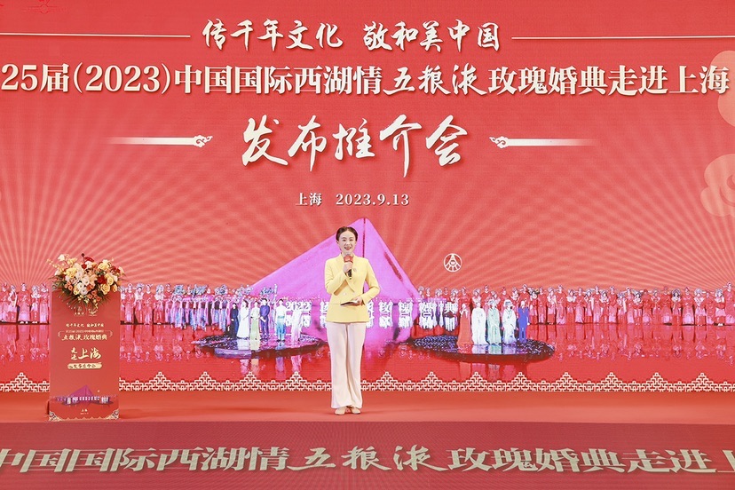 传千年文化 敬和美中国:中国国际西湖情五粮液玫瑰婚典走进上海