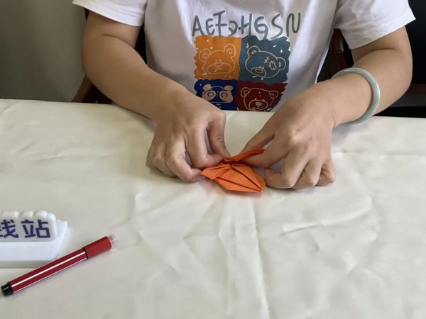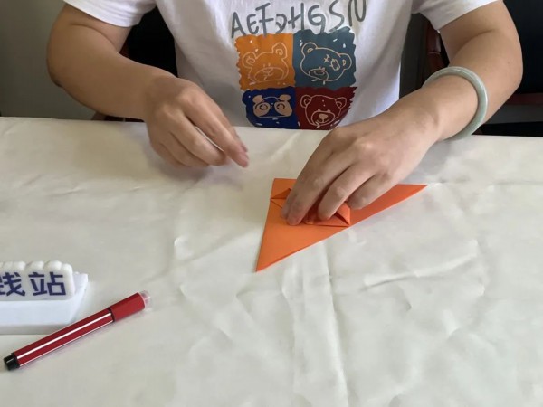 7、将底部再次向内折两个三角,最后将外面的两个三角向内折进内部。