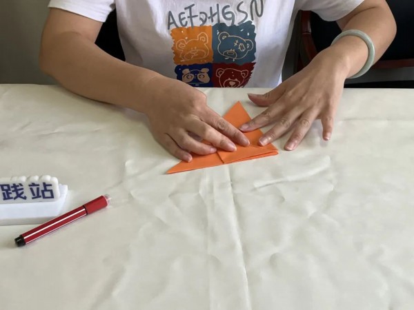 2、选择底边一面向上折起两个三角形。