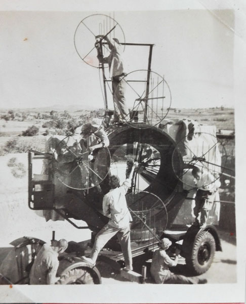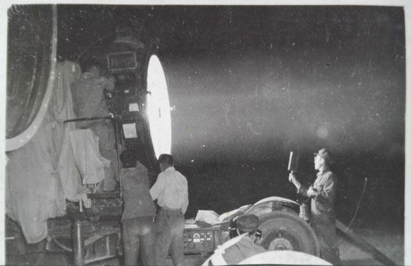图说:战士们在朝鲜战场上维护和保养探照灯 受访者供图