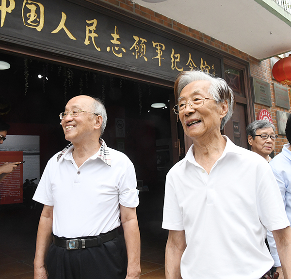 图说:志愿军老兵薛迪敏(右)、顾菊康(左)参观位于永福园的中国人民志愿军纪念馆 新民晚报记者 徐程/摄