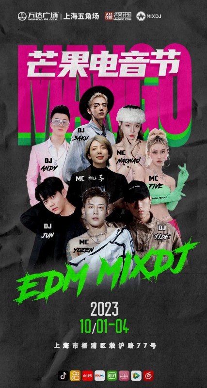 活动内容:特邀芒果电音节IP乐队,打造五角场万达专属重大节假日持续性音乐盛事。