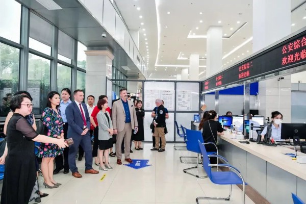 在华漕镇社区事务受理中心办事大厅,工作人员向校长及家属仔细介绍起受理服务大厅的一网通办自助机器、人工服务台、服务窗口等功能区。来到华漕15年的诺达双语学校小学部外方校长 Thomas Hitchings对华漕的变化深有感触,“教育、医疗、商业都在发生翻天覆地的变化,尤其是交通基础设施的建设,以前一小时的路程,现在只需要一刻钟,对我们生活、工作都十分便利。”