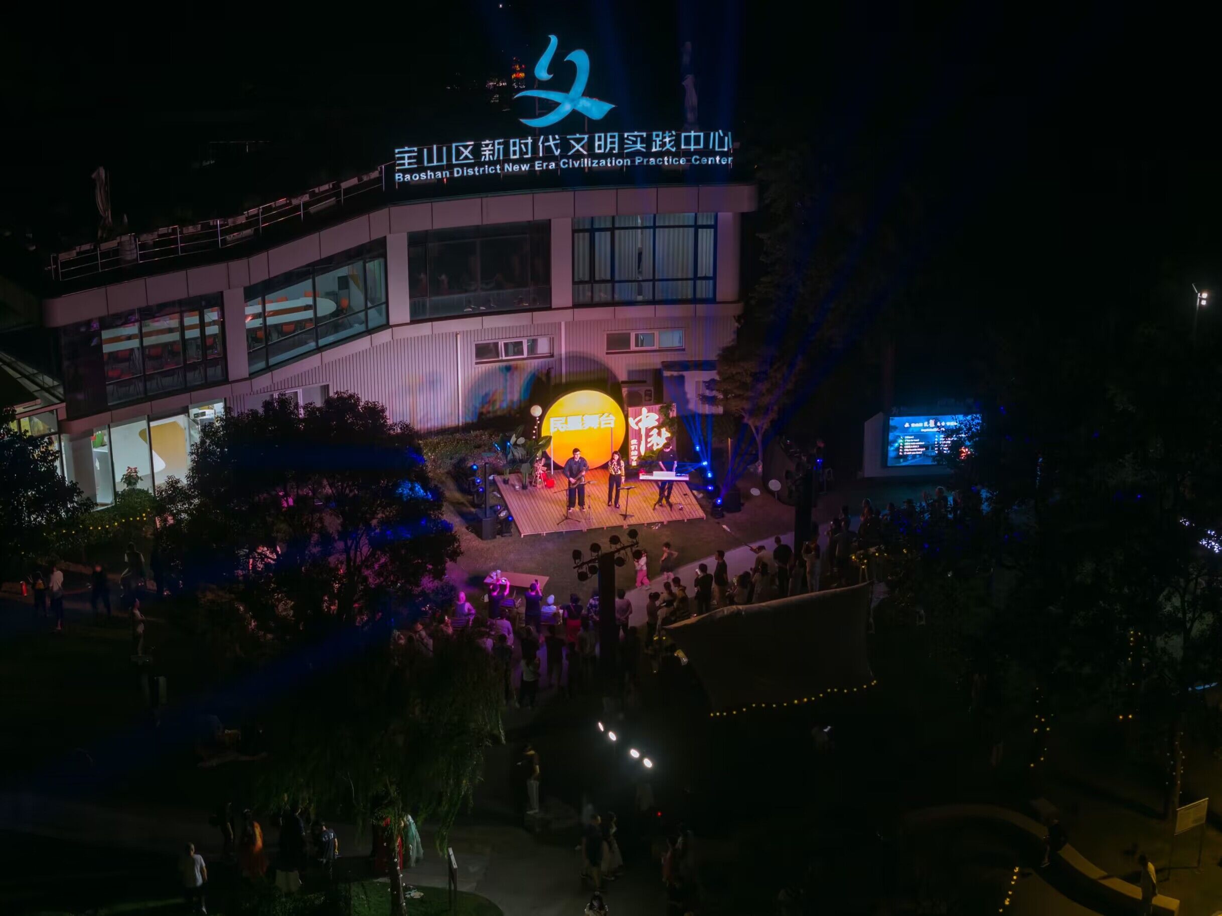 9月28日晚,以“赏星悦Moon,益游滨江”为主题,宝山滨江新时代文明实践公园中秋游园会如约而至。