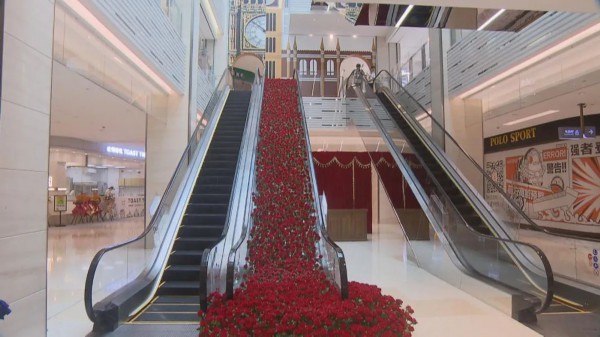 走进商场,只见商场的电梯上铺满了花朵,鲜艳的红色点亮了商场的喜庆氛围,宛如进入了童话世界。市民赵女士正和朋友在拍照,她高兴地说:“马上节日了,我们也想带家人、带孩子一起过来看一看,这边很新奇、很好玩。”