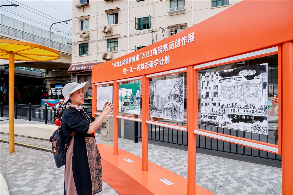 “展览以传统画作和数字作品结合装置同步开展,让市民通过艺术作品阅读城市,展现‘一江一河’和城市更新、‘15分钟美好生活圈’的关系。”长宁区文旅局相关负责人说。