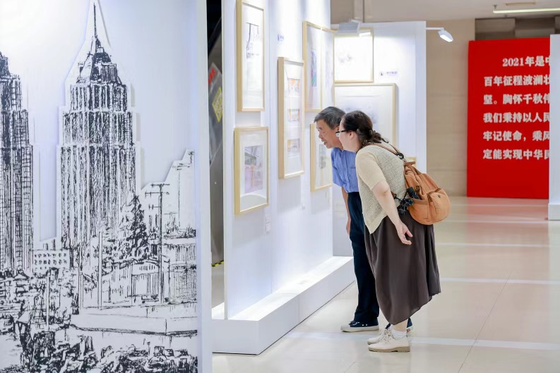 百年校园、苏州河华政段沿线已作为“会客厅”向市民开放,参观者一边零距离欣赏“一江一河”全线贯通后的自然风光,一边阅读着百年公园、百年校园、百年古树、百年建筑等流动的历史,在装置艺术和沉浸式展陈间感开启别样的海派城市研学。 河滨步道上,绘有周家桥街道风貌的钢笔画一字排开。这些画作既有根据周家桥百年工业历史老照片和资料创作出的艺术作品,也有当下生活场景的鲜活写生。在活动现场,市民游客还可以参与到3D打印钢笔绘画大美育活动中,用手中画笔留下关于城市、社区的印记。