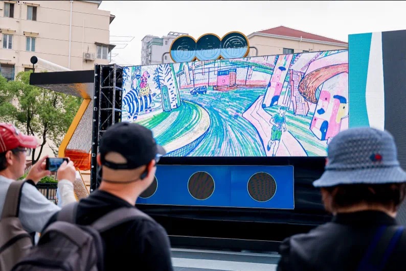 北新泾是现代苏州河工业的源头,也是上海现代城市文明的起源地之一。在洛克公园城市盒子CITYBOX,策展方将BOX用电子屏包裹,多位艺术家共同创作的《彩绘苏州河》数字化全景长卷进行了动态展示。下午17:30洛克公园CITYBOX点亮,呈现 “彩绘苏州河”数字展。