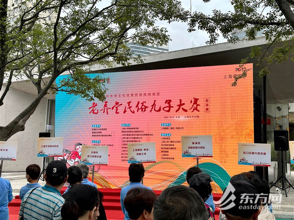 东方网记者董浩帆10月6日报道:今天上午9时,上海市社区“九子”运动协会主办的2023年上海旅游节豫园集团“大富贵”杯九子大赛暨上海第八届社区游戏节在苏州河畔的九子公园举办。