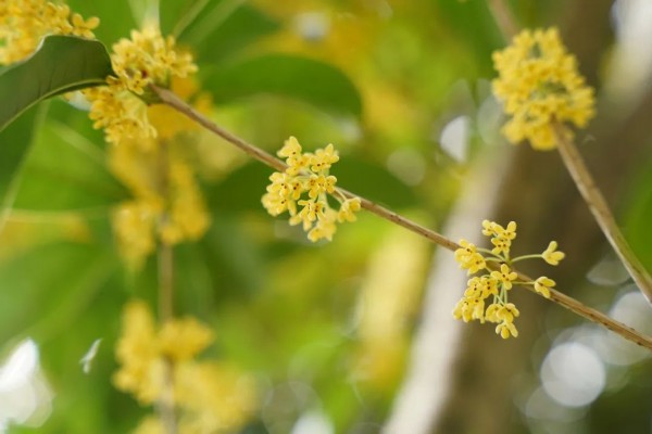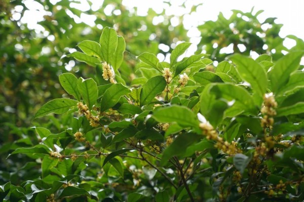 银桂,通体晶莹透白,虽不及丹桂好看,不如金桂的富贵,但香味最浓郁,花朵小巧玲珑,色泽柔和,花瓣娇嫩如雪,香气清幽淡雅,如山间清泉般清澈,随风摆动藏匿于树枝之间,白色的浪漫随游客的脚步声馈赠每一位路过的恋人。