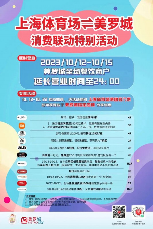 此外,持有上海体育场演唱会门票的市民还能享受美罗城指定店铺专享优惠!演唱会结束后,约上三五好友,来这里继续嗨!如果你愿意,晚间商场bgm任由大家发挥哦!