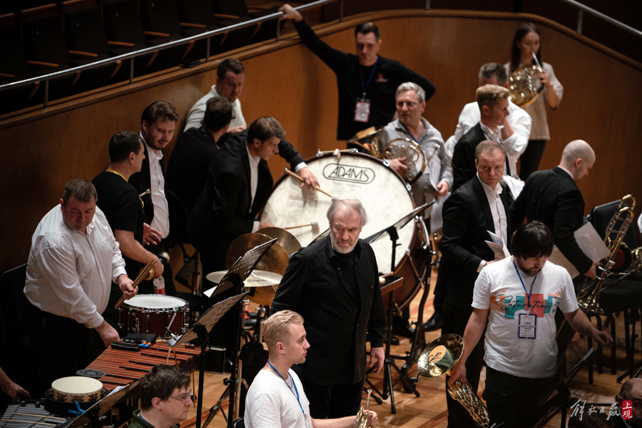 捷杰耶夫并没有站在指挥台上带领乐队排练,而是在观众席的不同位置来回踱步,聆听乐队在音乐厅中的演奏效果。