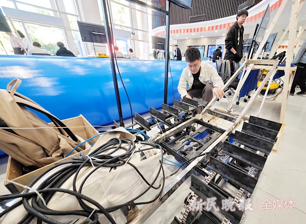 图说:船建学院师生作品亮相科创集市 来源/新民晚报记者 陶磊 摄(下同)
