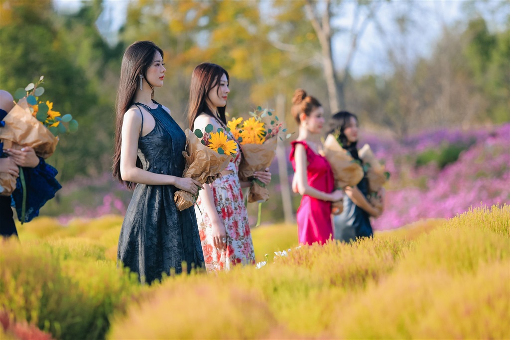 靓丽佳人踏香而行 环球小姐中国区花海大秀在金山这里浪漫上演