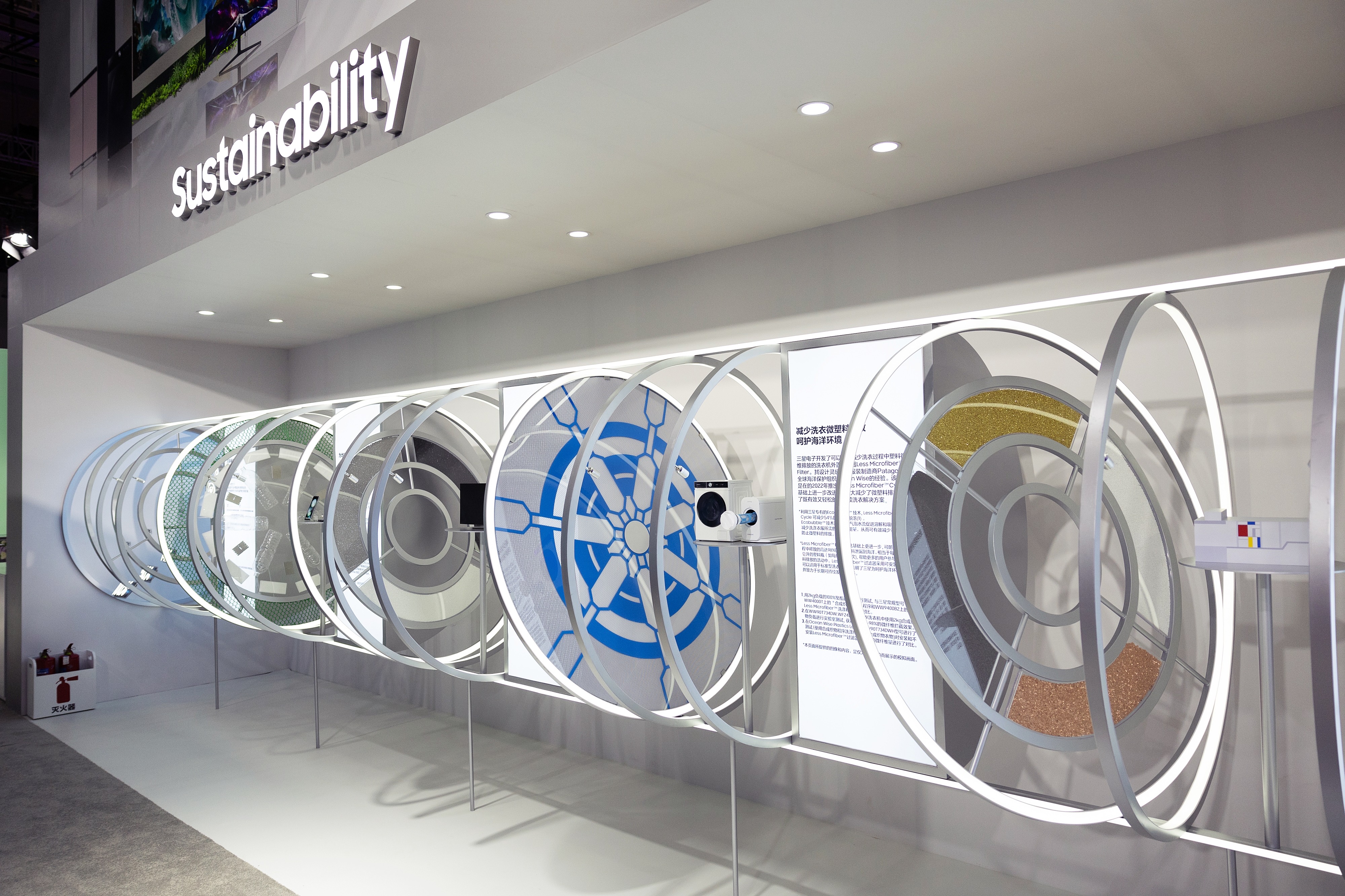 你是否能想象到,自己手中的手机可能用了废弃渔网?走入三星可持续发展展区,便能看到用了废弃渔网、回收利用玻璃等材料的Galaxy手机、利用捕集碳制造的低碳树脂用于电视背板以及用于海洋污染防治的微塑料过滤技术等。