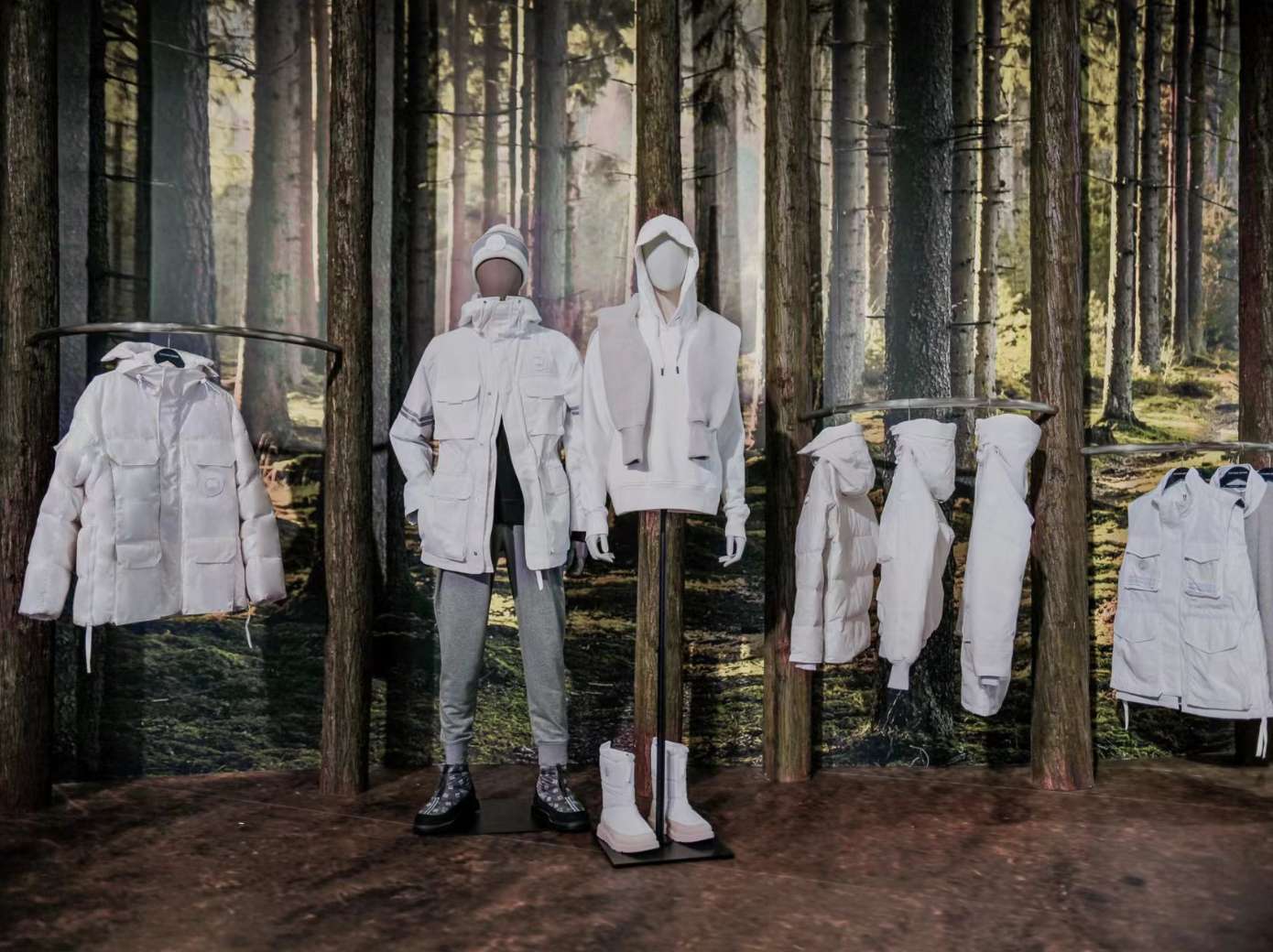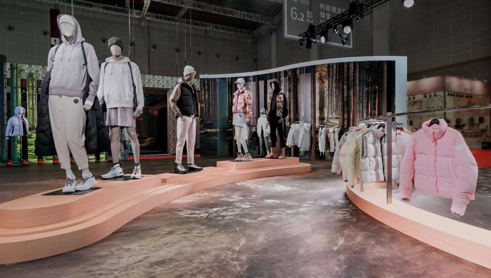 Canada Goose加拿大鹅展馆占地200平方米,设四大主题展区,其明星产品派克大衣、颇具特色的合作系列产品、轻量羽绒夹克等,值得一提的是,自从2021年在中国全球首发以来,鞋履品类一直在稳步成长,最新款Glacier Trail运动鞋也将在此次展览中展出。
