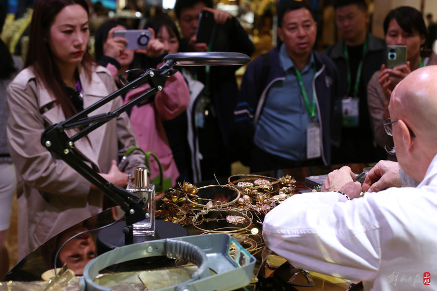 正是这位大师级的工匠,进博会期间成为朝九晚五的上班族,他自称有点“社恐”:“我住在农村也喜欢农村,那里安静,可以执着地做一件事情。”对于40年一直做这件事,他并没有感到无聊,因为要思考新的创意。