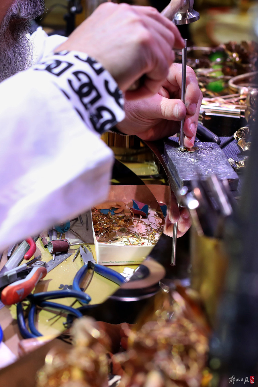 做到精细之处,他要戴上放大镜,并防止金属沫飞出。