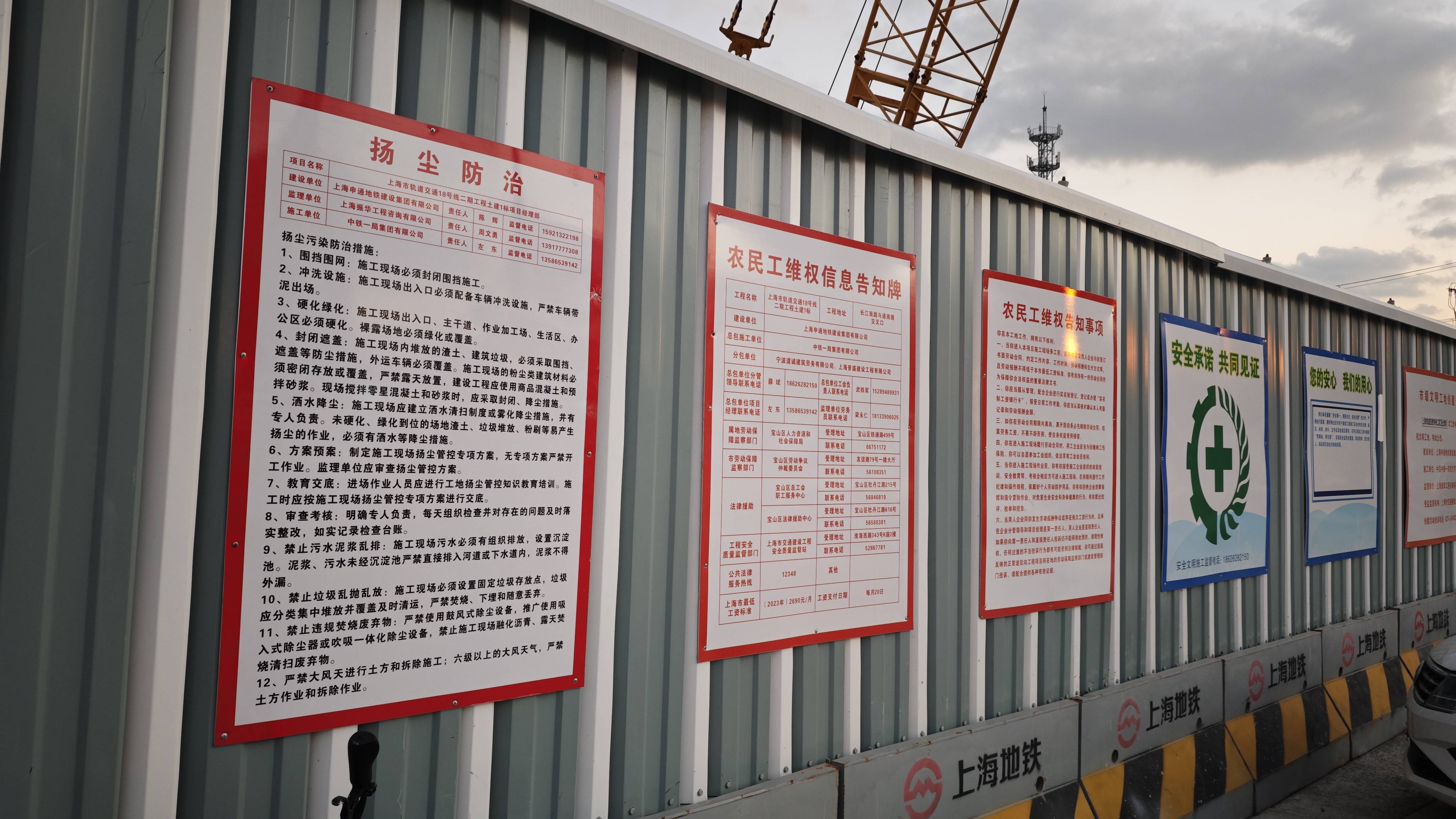 施工围挡上贴着上海市轨道交通18号线二期工程的告知牌。澎湃新闻记者李思洁图