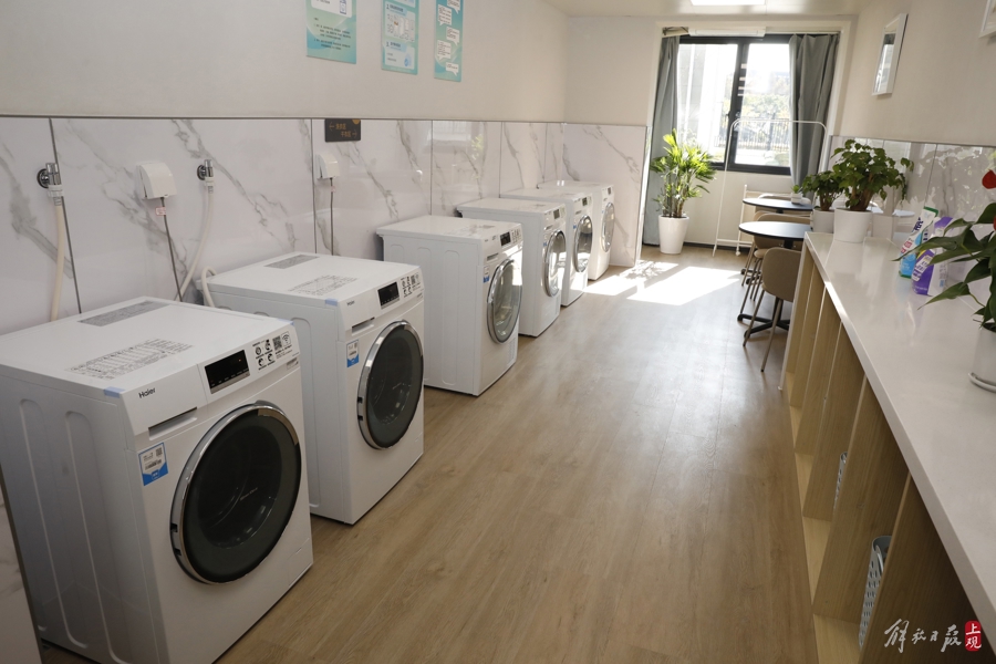 共享厨房、洗衣间、浴室、读书室、会客厅……闵行区“新时代建设者管理者之家”公共服务设施完备。